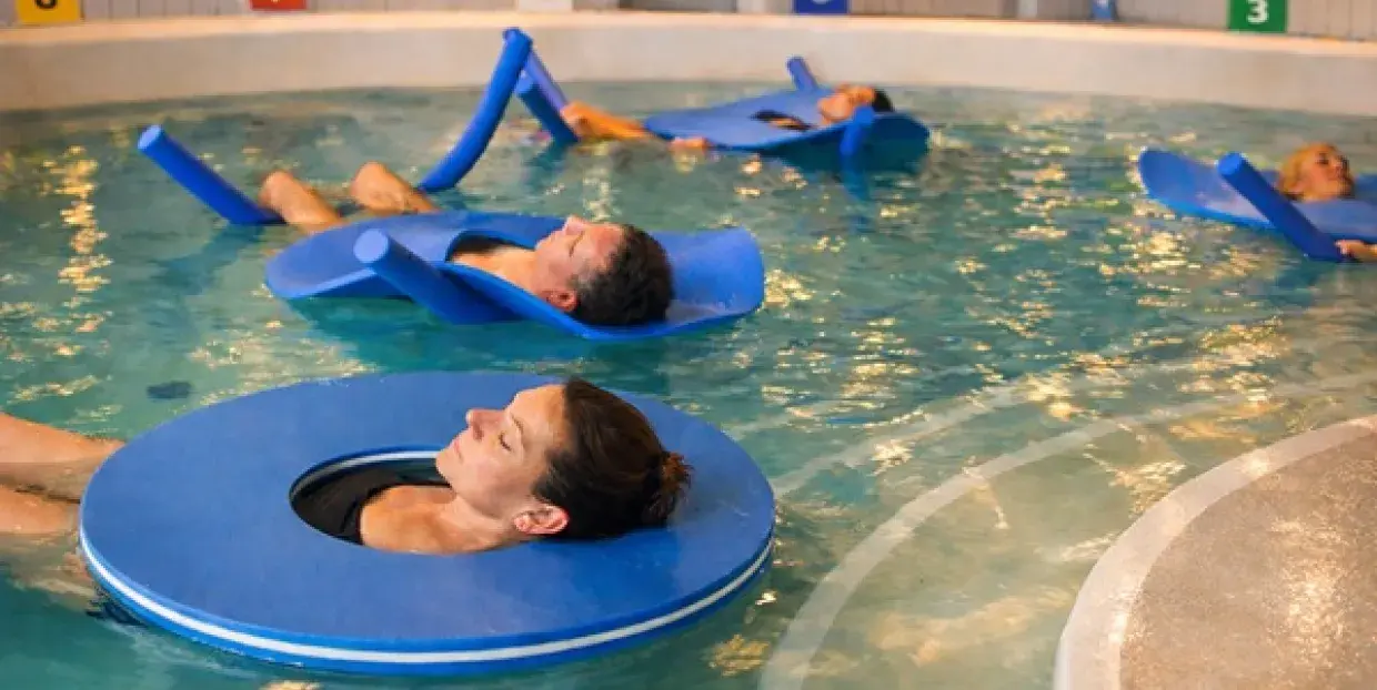 Séance collective en piscine thermale, promesse d’une relaxation profonde